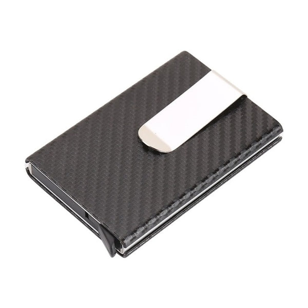 Business Aluminum Wallet Automatic Slide Card Case Carbon Fiber PU Leather Metal ID Credit Card Holder Clip